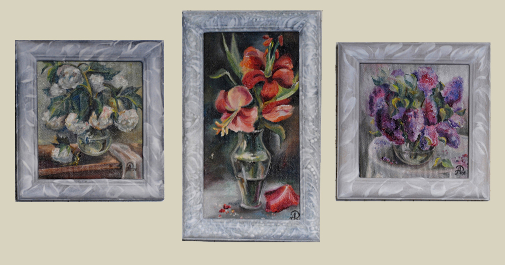 Цветы. Х.м. 10х10, 9х13, 10х10см. 1500р.-1 шт (с рамкой)