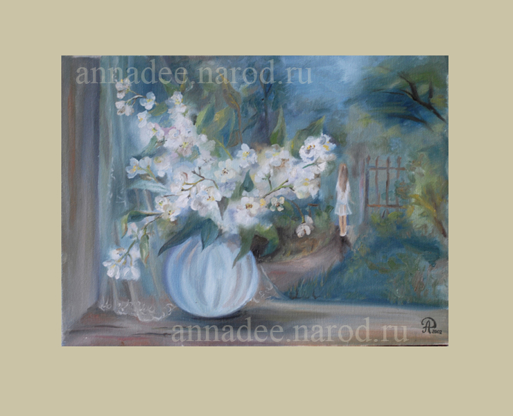 Жасмин на подоконнике. Х.м. 40х30см. 4000р.